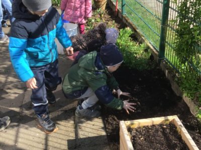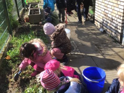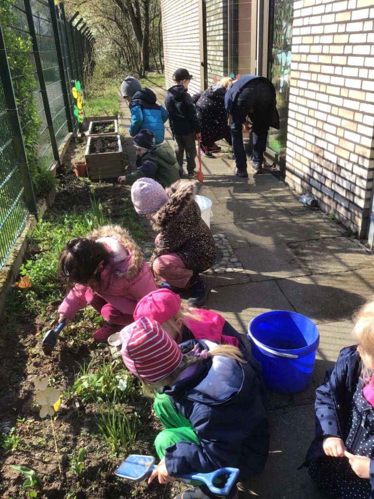 Viele Familien mit ihren Kindern leben in Wohnungen und haben keinen Garten oder gar Balkon. Wir betreuen ca. 190 Kinder und wollten schon länger auf unserem großzügigen Außengelände, den Kindern das naturnahe Gärtnern ermöglichen.