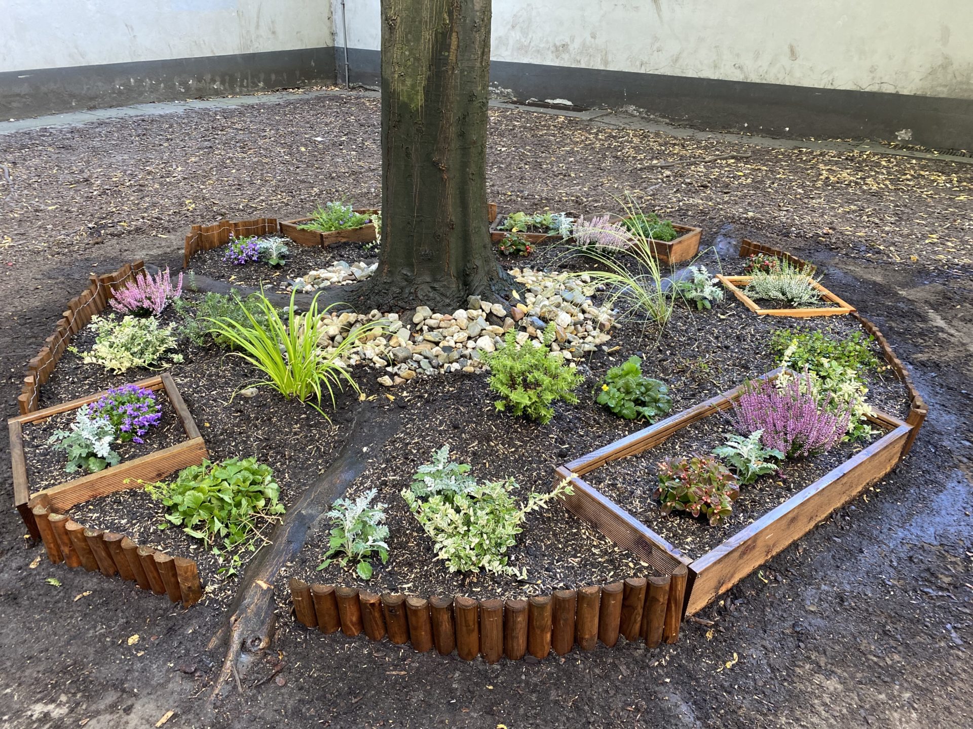 Durch die positiven Erfahrungen und die gute Resonanz in der Schulgemeinschaft über den Schulgarten erweiterten wir zwei weitere Flächen des Schulgeländes und begrünten auch diese naturgemäß, um noch mehr Raum für Schülerinnen und Schüler und vor allem Tiere zu schaffen. Bei der Beschaffung der Materialen achten wir besonders darauf, nachhaltig und sparsam zu sein. Mit Upcycling- Methoden oder Einkäufen von Gebrauchtmärkten geben wir alten Materialen, wie bspw. Beeten oder Bänken, wieder neues Leben und werten die Gegenstände neu auf. Dabei bringen wir den Schülerinnen und Schülern gleichzeitig bei, wie wichtig die Nachhaltigkeit ist. Im Juli 2022 erhielten wir im Rahmen des Projekts „Mehr Platz für Falter – Jetzt wird’s bunt!“, eine Auszeichnung für einen „Schmetterlingsfreundlichen Garten“ vom NABU-Bundesverband.