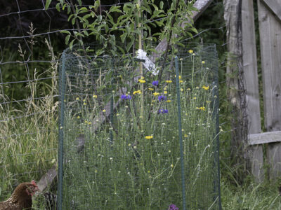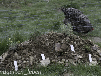 Seit 2021 wird unser Blumengarten erweitert. Erst kam ein Hochbeet für Stauden und eine kleine Benjeshecke dazu. Dieses Jahr ist ein Steinbeet und Kräuterbeet geplant. Zusätzlich wird ein Teil der Wiese bepflanzt.