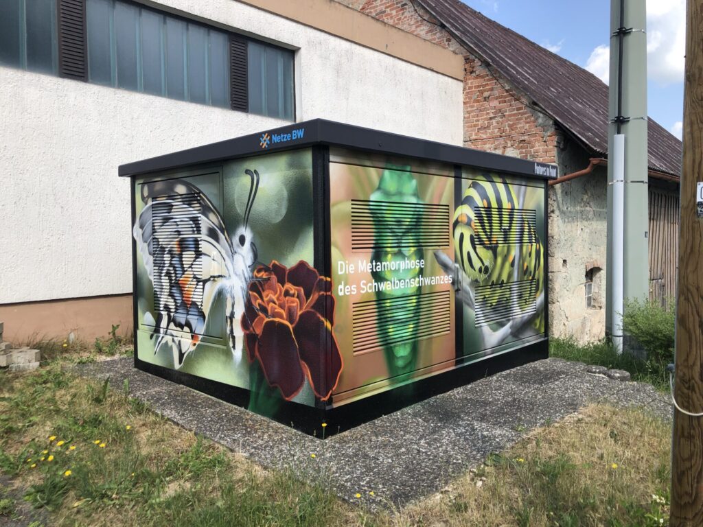 Als studierter Master in Umweltschutz und nun freischaffender bildender Künstler im Urban-Art-Bereich, versuche ich mit Insektenmotiven auf Flächen im öffentlichen Raum weitere Zielgruppen, außerhalb eines grünes Umfelds, zu erreichen und für die Thematik zu begeistern. Ein kleiner Gastbeitrag abseits der blühenden Gärten wie jede*r sich auf seine Weise für den Naturschutz einbringen kann. Bunte Grüße an alle Insektenschützer*Innen.