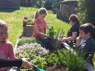 Als Start in den Frühling wurde ein eigener Jugendclubgarten angelegt, mit Blühstreifen rundherum. Auch die Blüten der beiden Hochbeete und der verschiedenen neu gepflanzten Gemüsesorten werden einigen Insekten gefallen.