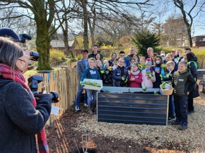 Gemüse und Kräuter: in sechs Hochbeeten u.a. Estragon, Rosmarin, Salbei und Thymian , Lauch- und Rettich-Sorten, Kohlrabi, Borretsch und Petersilie, essbare Blüten (wechselnde Bepflanzung!)