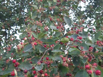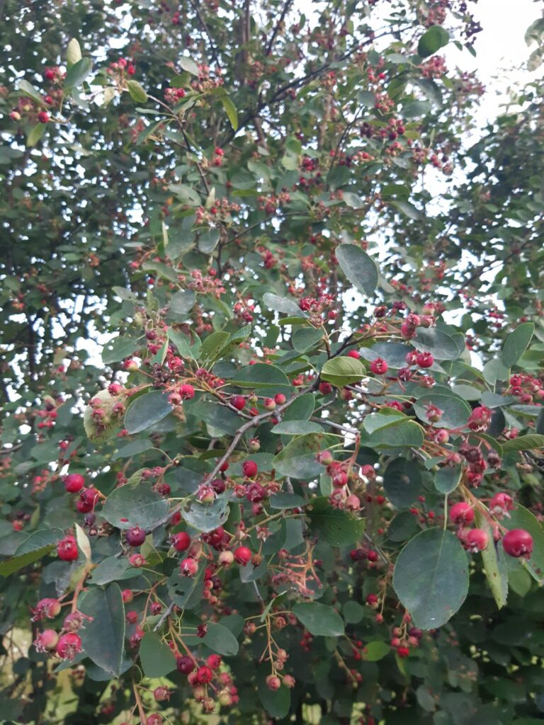 Es wächst der Holunder, Kornelkirsche, Maibeeren und Heidelbeere, Felsenbirne, Aronia und vieles mehr, auf der angegliederten Streuobstwiese wachsen Mispel und Speierling, zusammen mit Haselnuss und Äpfeln, Kirsche, Birnen und Pflaumen.