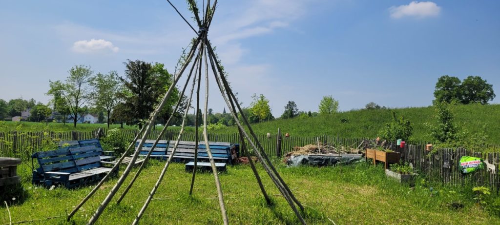 Seit 2 Jahren arbeiten viele Kinder, Jugendliche und ein paar Leiter daran, die Parzelle im Bürgerpark für die Tiere uns Pflanzen in ein Paradies umzuarbeiten. Es ist nicht leicht, da es kaum Wasser und keinem Strom gibt, der Boden extrem fett durch die lange Landwirtschaft vorher ist und es keinen Schatten gibt.