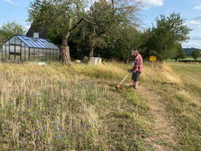 Am Anfang war es nur ein Gedanke. Die Anzahl der Schmetterlinge, Hummeln und Wildbienen ging in unserem Garten merklich zurück. Wir haben zunächst im Baumarkt oder im Handel "Wildbienensamen" gekauft, im Glauben etwas gutes zu bewirken. Das ganz Große kam dann unverhofft, als das Grundstück neben uns verkauft werden sollte und wir den Zuschlag erhalten haben. Dieses Grundstück wurde in der Vergangenheit als Viehweide gehalten und von den Kühen abgegrast. Vom Feld nebean kam der Samen für die eiweißreiche Silage welche der Landwirt heute für die Fütterung benötigt. Die Kühe verschwanden in den Stall und zurück blieb eine wilde Wiese, auf der kaum eine Blüte zu sehen war.