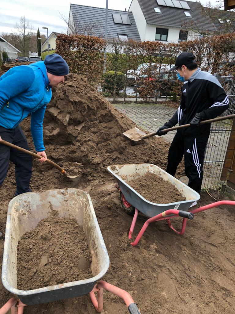 Neben dem Gemüseacker wird noch ein Naschpfad angelegt, wo Erdbeeren und Säulenobst auf Bestäuber aus dem neuen Insektenhotel warten.