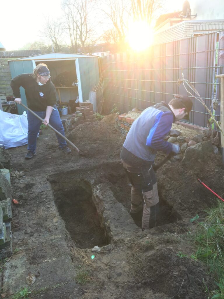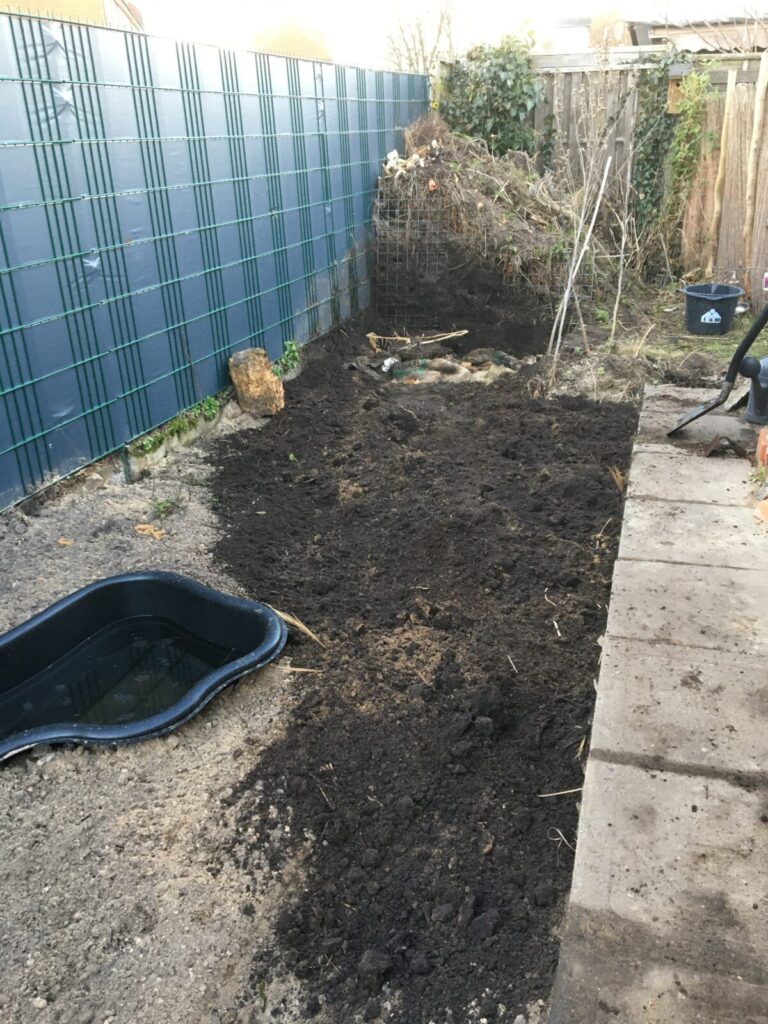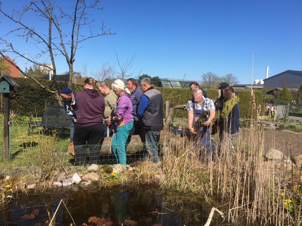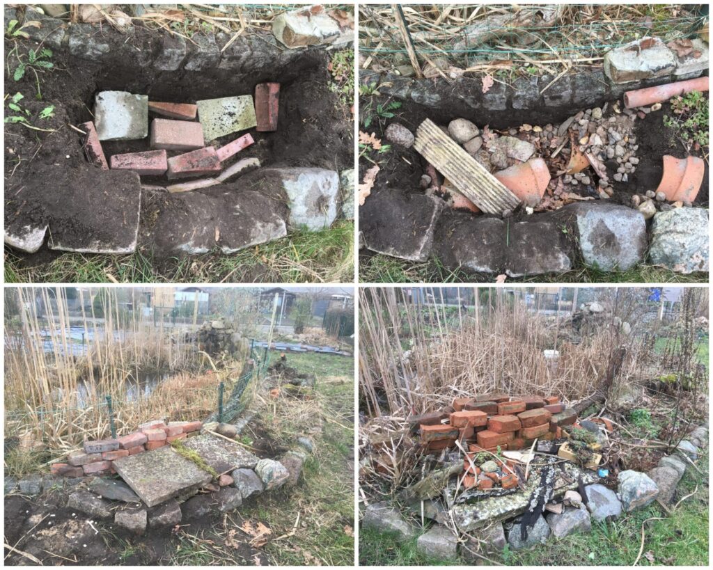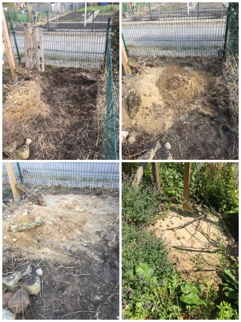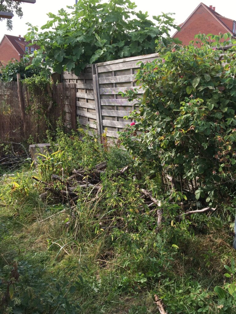 2017 hatten wir das große Glück, eine Parzelle in der Kolonie Nieland vom Kleingartenverein Wedel übernehmen zu können. Der Garten hat eine offene, sonnige Lage am Rand eines Industriegebietes. Uns war von Anfang an klar, dass wir hier naturnah gärtnern wollten. Außerdem hatten wir die vage Idee, einen Ort zu gestalten, an dem auch andere Menschen in Kontakt mit der Tier- und Pflanzenwelt kommen könnten. Ich hatte einige Zeit vorher einen Bericht über den Comenius Garten in Berlin gesehen, in dem vor allem Jugendliche und Kinder in einem geschütztem Raum mit einbezogen werden und Natur erleben. So etwas im Kleinen schwebte uns vor. Und insektenfreundlich sollte es sein! Unsere Vorgänger hatten schon einmal eine bunte Blumenmischung ausgesät, von denen noch einige Pflanzen auf einem kleinen Stück am Zaun wuchsen, ansonsten gab es ein paar Obstbäume und Beerensträucher. Außerdem einen größeren Teich in der Mitte des Gartens und lauter gepflasterte Wege. Los ging's!
