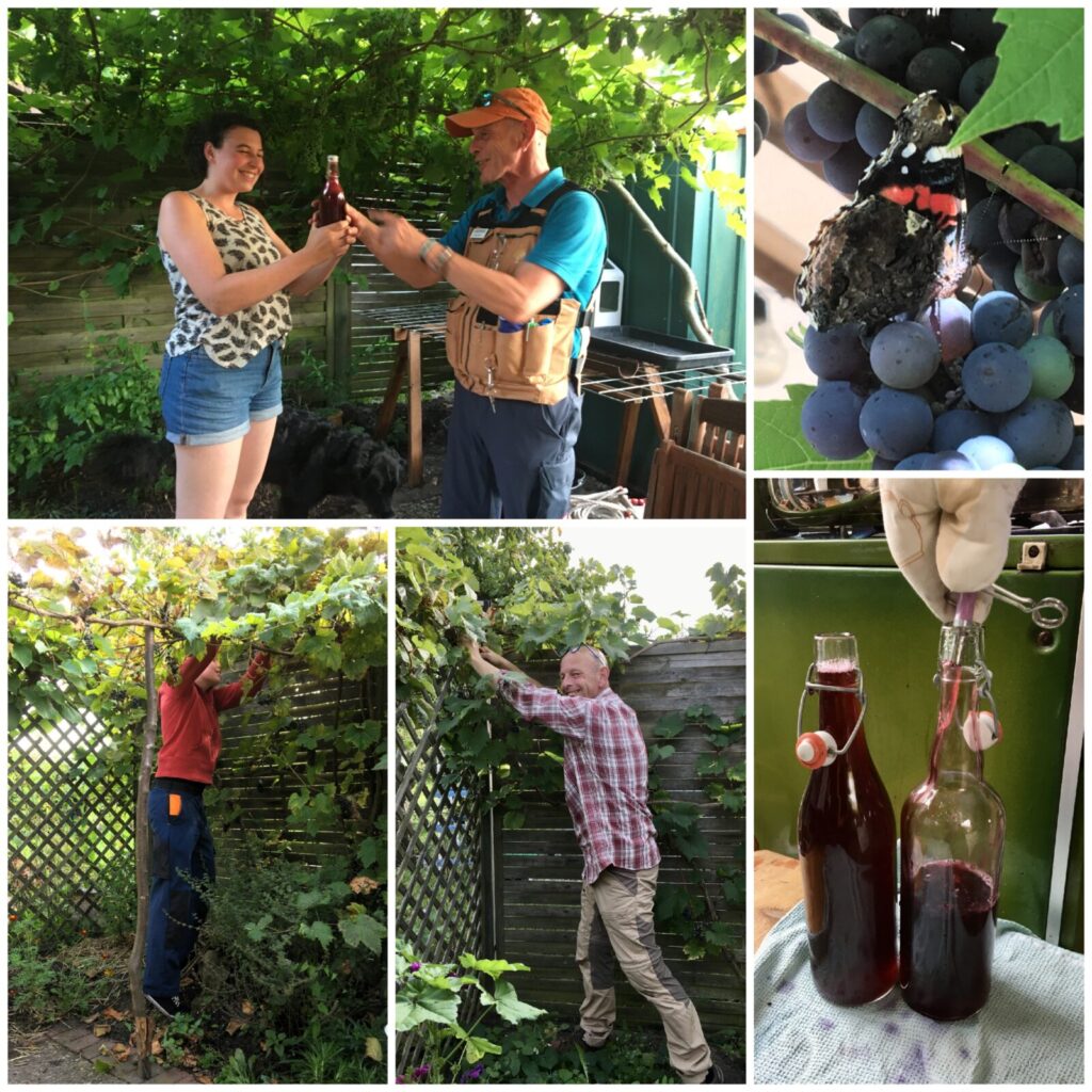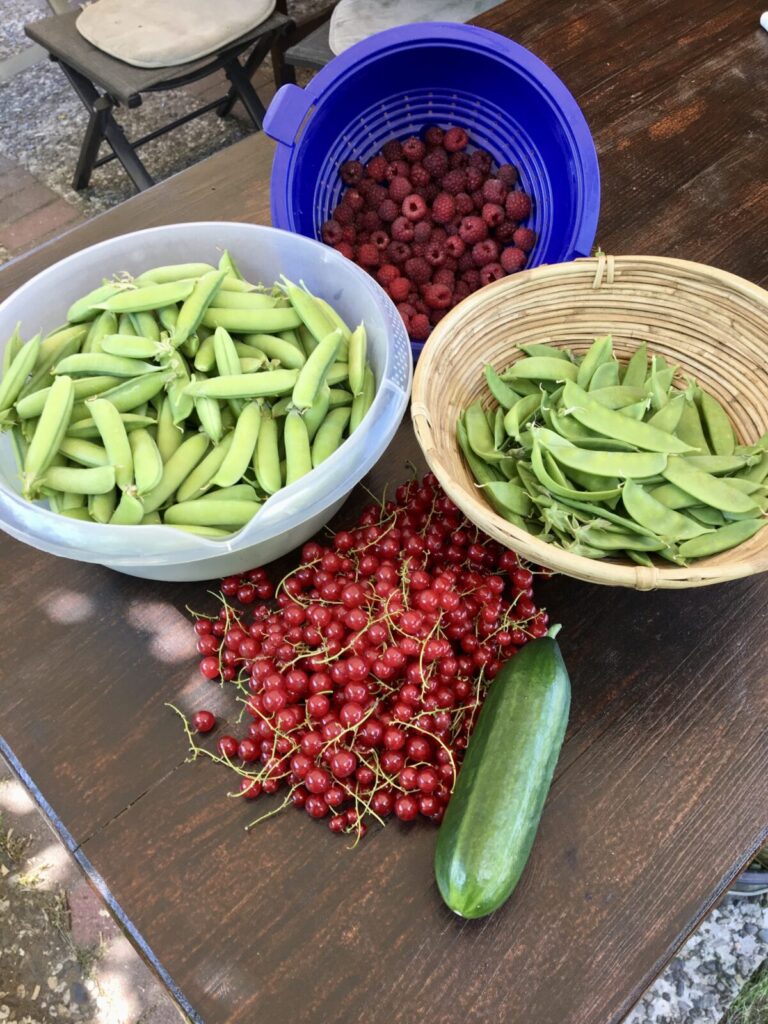 Wichtig ist uns, möglichst mit den vorhandenen Ressourcen nachhaltig zu arbeiten und zu gestalten. So nutzen wir so gut wie alle 'Gartenabfälle' für den Kompost oder als Mulch, bauen mit den Steinen, die wir vorfinden, Trockenmauern, stöbern bei Ebay oder fällen, wenn nötig, den Baum der Nachbarin und übernehmen das Holz. Viele Feldsteine durfte ich von meiner Arbeit auf einem Biohof mitnehmen und so mancher Holzstumpf von dort oder ausgediente Jutesäcke (Mulch) und Stroh fanden den Weg in unsere Beete. Schafswolle zum Düngen bekommen wir über einen Nachbarn und im Nachbarort können wir günstig Alpaka-Kaka holen. Auch über diese Aktionen kommen wir immer wieder ins Gespräch und revangieren uns gerne mit selbst gemachter Marmelade oder Traubensaft.