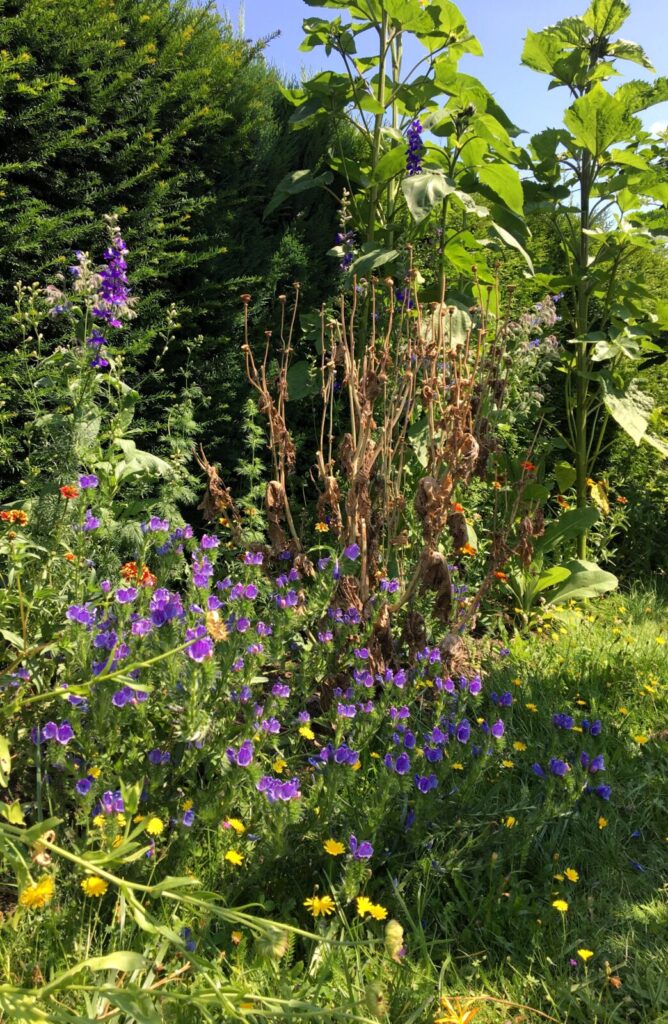 Diese Art zu gärtnern schult alle Sinne ungemein. Mittlerweile gehen wir nur noch aufmerksam durch den Garten, entdecken oft zuerst mit den Ohren, weil sich ein fremdes Summen einstellt und in allen Beeten wird mit Bedacht gearbeitet, um mögliche Nester im Boden nicht zu stören. Jede Neuanschaffung und Umgestaltung erfolgt unter insektenfreundlichen Gesichtspunkten.