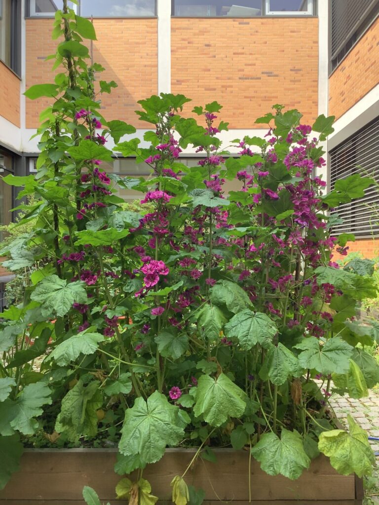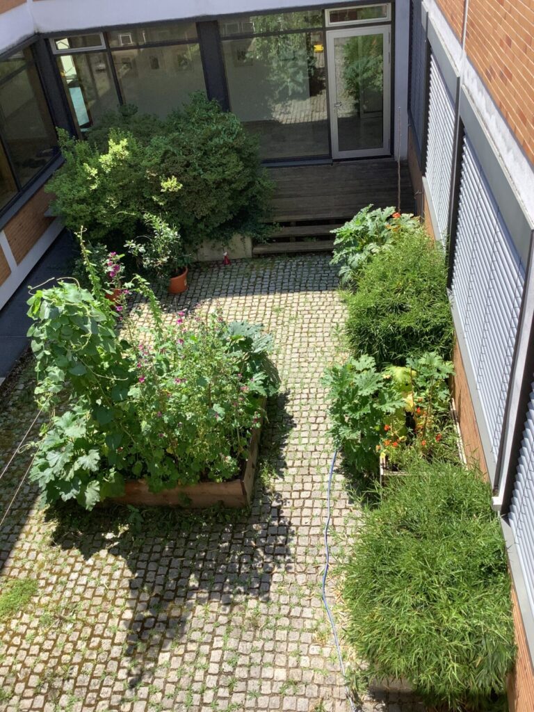 Der regenreiche Spätfrühling und Frühsommer halfen uns dabei, dass sich der neu bepflanzte Innenhof binnen weniger Wochen in eine farbenreiche blühende Insel entwickelt. Besonders wertvoll für uns ist die Erfahrung, dass dies schon mit überschaubarem Aufwand und geringen Kosten möglich ist. Das macht Mut, glücklich und uns alle ein bisschen stolz!