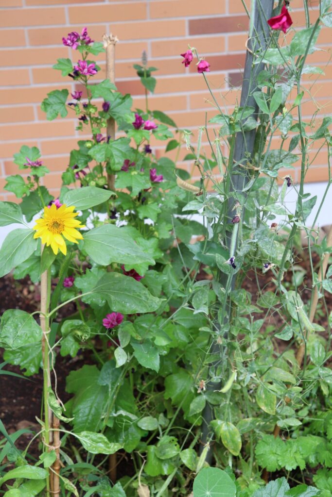 Einjährige krautige (Kultur-)Pflanzen: Duftende Platterbse, Kapuzinerkresse, Pracht- und Trichterwinde, Sonnenblume, Ringelblume, Zucchini