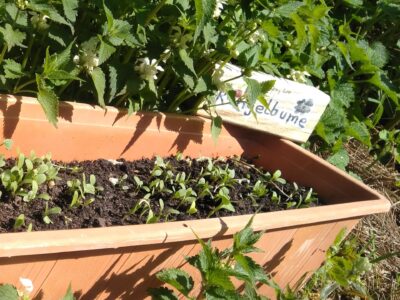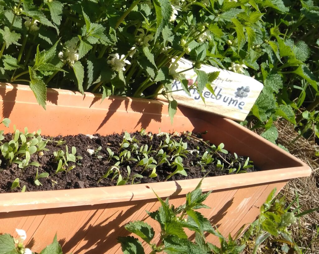 In Zeiten des Klimawandels versuchen wir unseren Schulgarten naturnah und Reccourcen schonend zu gestalten. So wird aus dem ehemaligen Rasen eine Wiese, wir haben eine Kräuterspirale die blühen darf und gerade entsteht eine Kräuterspirale zum Naschen.