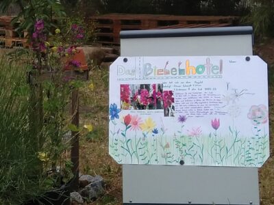 Im hinteren Bereich entsteht eine Insekten Wiese, die man gut vom grünen Klassenzimmer beobachten kann.