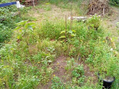 Eine Benjeshecke ist auch entstanden, Material finden wir im Garten, Weiden Schnitt und diverses Schnittgut von unseren Obstbäumen und Sträuchern.