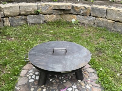 Beim diesjährigen Projekt weitestgehend alleine. Zu Beginn, ein wenig Unterstützung durch eine Landschaftsgärtnerin und beim Steineklopfen mit Unterstützung der Familie.