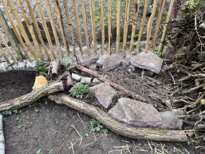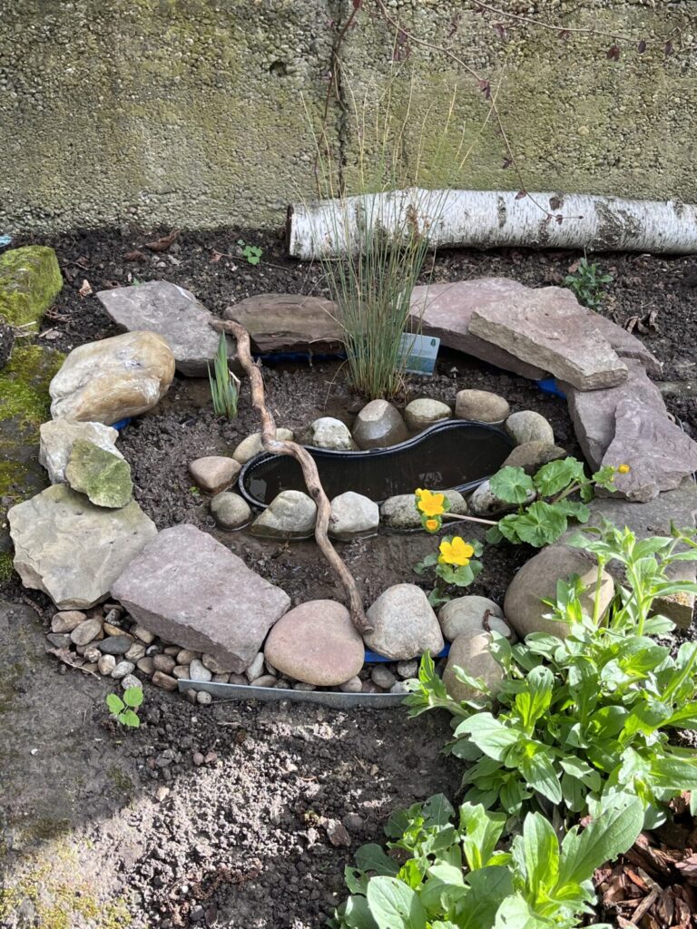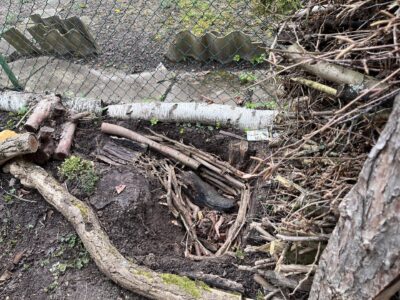 Das kleine Projekt, welches ich vorstellen möchte, habe ich im Frühjahr 2024 umgesetzt. Ziel ist es nach und nach, vielfältige Strukturen zu schaffen. Stein- und Totholzhaufen, wie auch eine kleine Benjeshecke für den Gartenschnitt gibt es schon aus 2023.