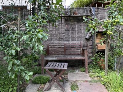 Seit Frühjahr 2023 wurde auf einer Fläche von ca. 130 m2, mit altem Baumbestand der Grundstein für die Entstehung eines kleinen Naturgartens gelegt. Eigentlich war er es schon vorher irgendwie, da es über längere Zeit an der Pflege gemangelt hat und sich somit von ganz alleine die heimischen, in der Regel unerwünschten Beikräuter zuhauf wohlgefühlt haben. Was schon da war wurde beobachtet, an manchen Stellen nur behutsam verändert und anderes musste weichen. Es sollen Strukturen für Vielfalt und Flächen mit möglichst vielen heimischen Wildstauden geschaffen oder bestehendes ergänzt werden. Alles was ich schon im Garten hatte, an Strauch und Kompostmaterial, Plattenresten u.v.m. sollte irgendwann wieder Verwendung finden.