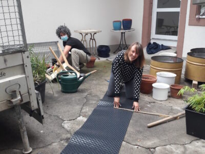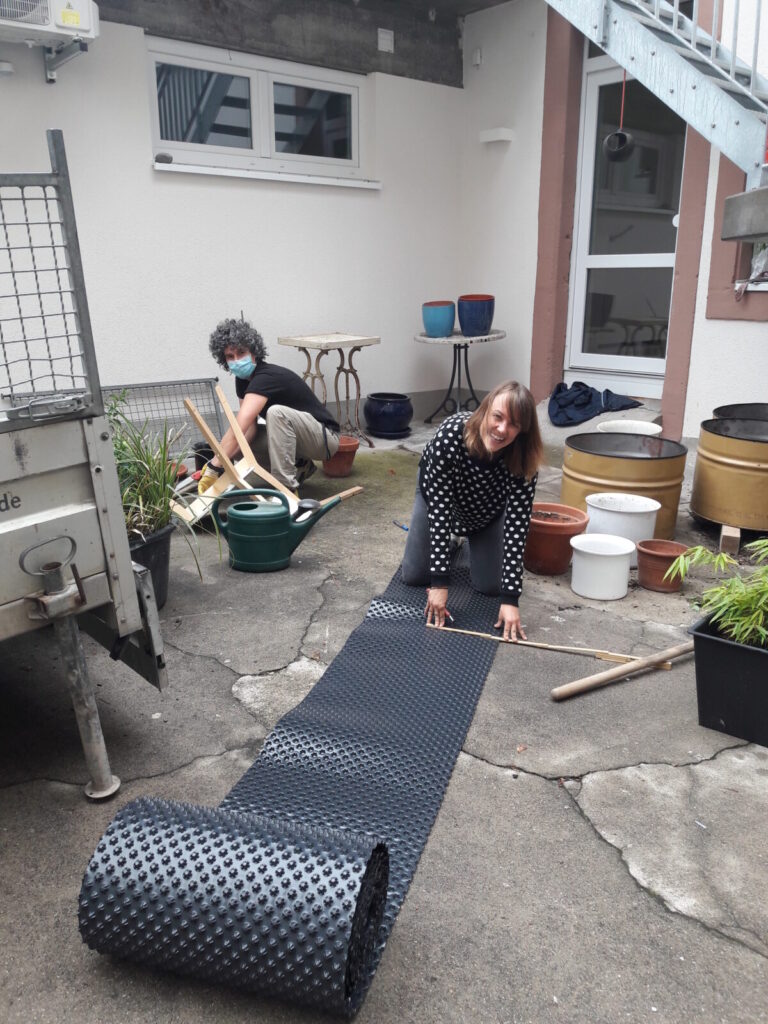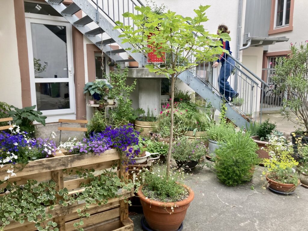 Regina und Rachel, zwei Mitarbeiterinnen mit "grünem Daumen" haben sich vorgenommen, den tristen, grauen Innenhof in eine kleine idylische Oase zu verwandeln, die sowohl den Beratungsfachkräften eine entspannte und naturnahe Umgebung als Pausenraum bietet, als auch einen zusätzlichen Beratungsort schafft, der den jungen Ratsuchenden Zeit zum Durchatmen und Wohlfühlen gibt. Durch die Auswahl heimischer, bienenfreundlicher Pflanzen auf einer Gesamtfläche von ca. 25 m² wird nicht nur die Umwelt unterstützt, sondern auch ein angenehmer Aufenthaltsort für Mitarbeitende und Ratsuchende geschaffen. Dieses Projekt trägt dazu bei, die Arbeitsumgebung der Beratungsfachkräfte zu verbessern, eine entspannte Beratungsatmosphäre für Ratsuchende zu erschaffen und gleichzeitig einen Beitrag zur Förderung der Biodiversität zu leisten.