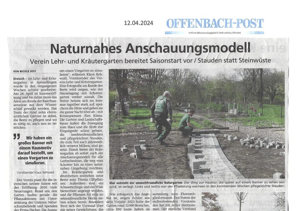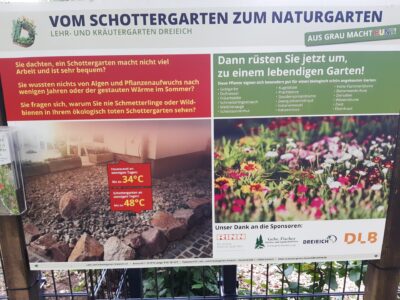 2024 wurde neu ein Mustergarten „Schottergarten zum Naturgarten“ angelegt und Musterbeete für