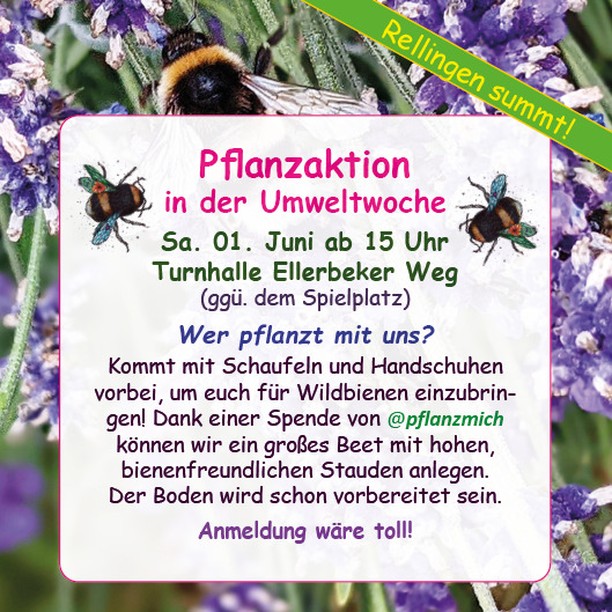 Seit 2022 ist es unser Ziel in Rellingen in Schleswig Holstein mehr insektenfreundliche Blühflächen und dadurch mehr Artenvielfalt zu erzielen. Dafür haben wir 2023 einen Wettbewerb dieser Art in unserer Gemeinde durchgeführt und 3.300 m² neue Blühfläche herstellen können. Dieser Wettbewerb endete mit einer Ausstellung aller vorher-nachher Fotos im Rathaus und einer Preisverleihung (https://www.rellingen.de/rellingen/ist-umweltfreundlich/rellingen-summt).