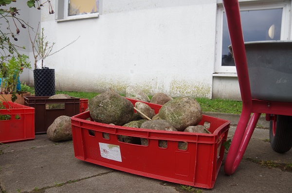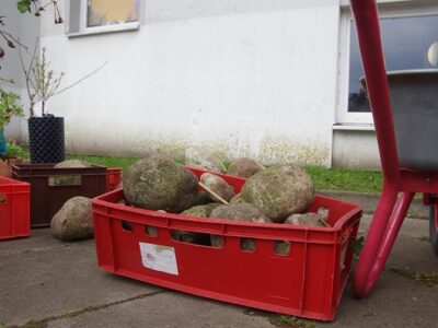 Viel Spannung erzeugte die „Kiste der Pandora“, in der sich unter anderem die gepanzerten Bodenwesen befanden, die nach der Fertigstellung der Beete gemeinsam mit den Kinderhänden dorthin gesetzt wurden.