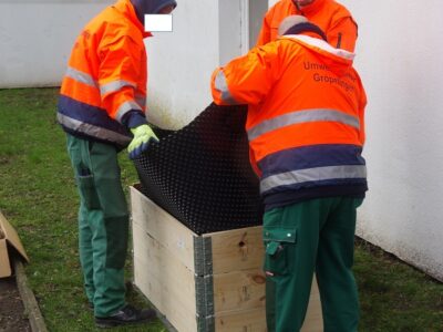 Dieses Problem und der Umgang damit lässt sich aber auch auf die gleichen Flächen im Bereich des dortigen Insektenschutzes übertragen. Fragestellungen wie Giftpflanzen, invasive Arten, vertragliche Regelungen mit der Gartenbewirtschaftung, Straßenbauamt, bis hin zur Frage der Mieter, ob von einem Bienenhotel eine Gefahr für die Kinder ausgeht, mussten gelöst werden.