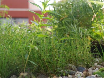 Auf der Grundfläche von 9 ha wurden im Frühjahr die Flächen ermittelt, die eindeutig neu bepflanzt werden sollten. 7 Beete mit ca. 36 m² (als Zahl für diesen Wettbewerb) wurden bis jetzt mit Trittsteinen neu und zusätzlich 5 Hochbeete angelegt. Hauptaufgabe war es aber, die Rasenflächen und andere Bereiche aufzuwerten. Also nicht die reine Neuanpflanzung, sondern die Modifizierung der Bereiche war eines der Ziele. In den Grasbereichen wurden Pflanzen wie Gundermann, Pfefferminze als sich durch Rhizom ausbreitende Arten zusätzlich gepflanzt. Ähnlich wie die Wegericharten oder der kleine Sauerampfer können all diese Arten einen Rasenschnitt ohne großen Schaden vertragen. Sie kamen zwar bereits auf einzelnen Flächen vor, nur hier unterscheiden sich die Gebiete von den jeweiligen Zuständigkeiten. Die ersten 4 ha sind so schon besetzt worden. Auf allen Rasenflächen wurden somit die fehlenden Arten zur Optimierung flächendeckend eingesetzt. Das wird im Herbst noch weitergeführt, sodass auf den 9 ha die Flächen aufgewertet werden, ohne hier Eingriffe in die derzeitigen Betriebsabläufe zu benötigen – eines der wichtigen Kriterien, die es stellenweise zu lösen gab.