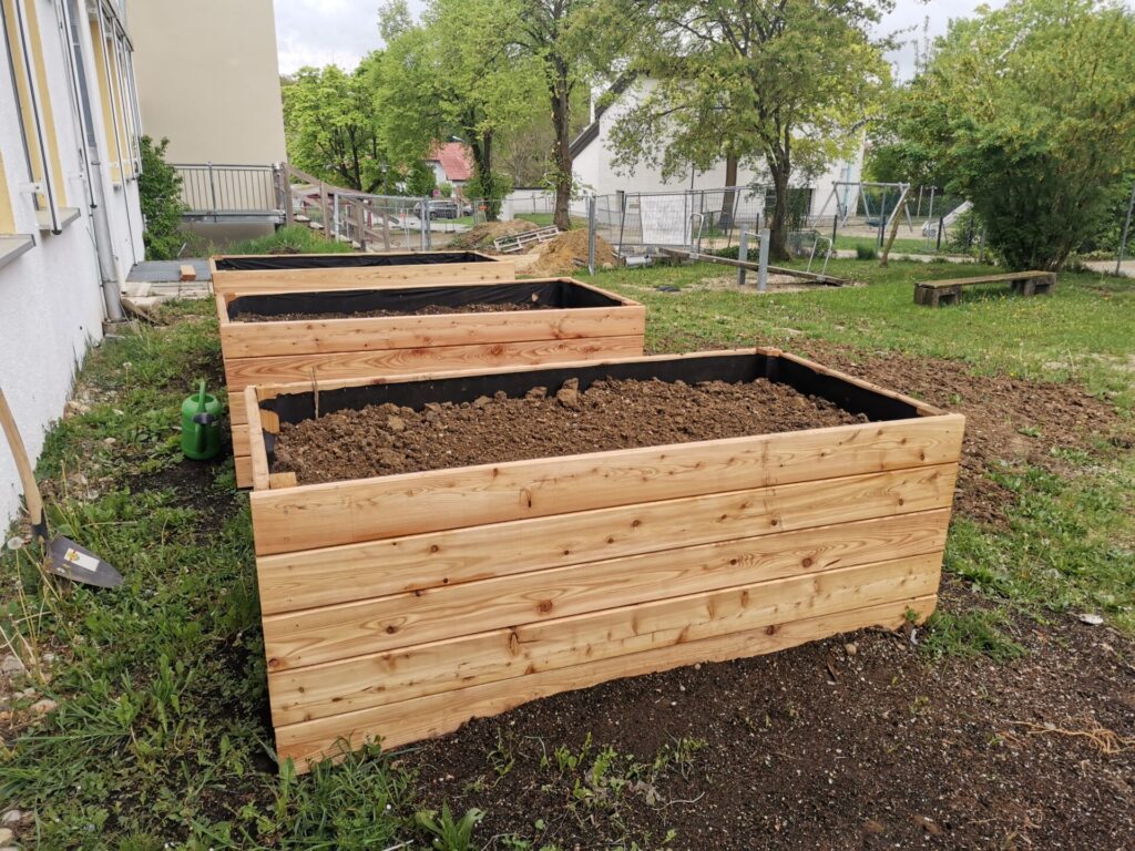 Für unseren Schulgarten haben wir dieses Frühjahr im März drei neue Hochbeete bekommen.