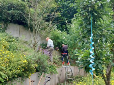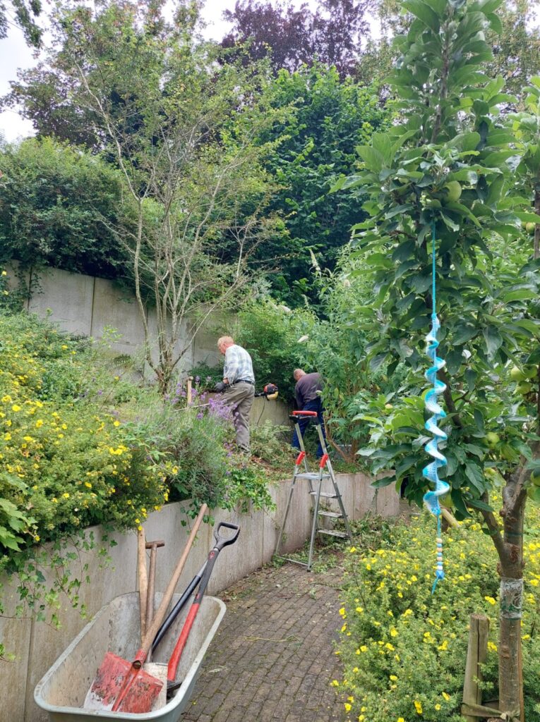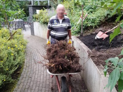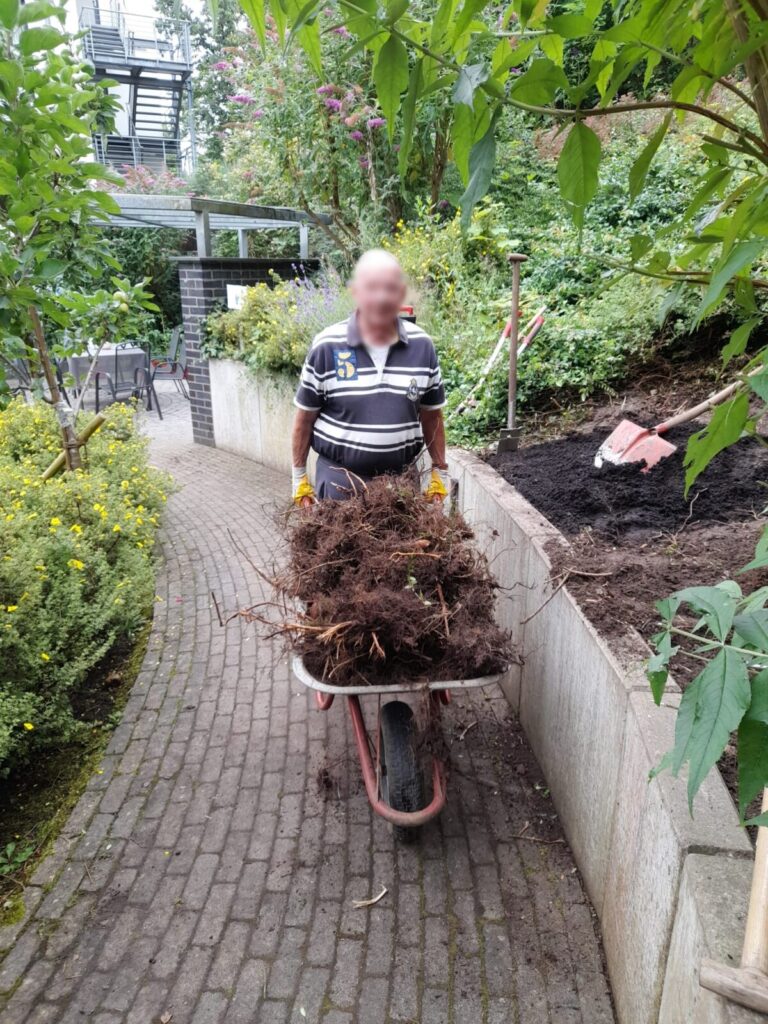 "Unsere kleine Farm" ist ein zweijähriges tier- und naturgestütztes Präventionsprojekt in der stationären Pflege mit dem Ziel die Bewohnenden stationärer Einrichtungen in den Bereichen Mobilität, gesunder Ernährung und psychischer Gesundheit so zu fördern, dass Erkrankungen entgegengewirkt wird. Dies geschieht über tiergestützte Interventionen und Maßnahmen im gärtnerischen Bereich. So wird z.B. gemeinsam mit den Bewohnenden regionales Gemüse und Obst angebaut, gepflegt, geerntet und verarbeitet, es werden Nistkästen und Insektenhotels gebaut und heimische Vogelarten beobachtet. Das Projekt wird vom Verband der Ersatzkassen e.V. gefördert und in fünf Einrichtungen der AWO-Seniorendienste Niederrhein umgesetzt. Nachdem die Entwicklung dieses Projekts gute Erfolge erzielt und sich in allen beteiligten Einrichtungen etabliert hat, wird der Blick nun weiter auf das Thema Klimagesundheit geichtet. So wird in einem nächsten Schritt der Fokus auf insektenfreundliche und klimageeignete Bepflanzung gelegt. Ein Bereich des Farmgartens ist hauptsächlich mit Bodendeckern bepflanzt, der nun - zunächst zum Teil - entsprechend umgestaltet wurde. Fachliche Beratung erhielten wir durch eine Biologin, die uns ihr Fachwissen nicht nur für die passende Gestaltung der Beete zur Verfügung stellte, sondern Bewohnende und Angehörige für das Thema Arten- und Klimaschutz sensibilisiert. So wird im August eine Schulung mit dem Titel: "Gartenschutz ist Artenschutz! - Was lebt im Garten "Unserer kleinen Farm"? Wie kann es nachhaltig geschützt werden, zum Klima- und Artenschutz beitragen und Bewohnende und Angehörige mit einbinden?" geplant um alle Beteiligten in dieses Thema einzubeziehen. Die neue Bepflanzung sowie die Pflege der Blumen wird gemeinsam mit Bewohnenden der Einrichtung durchgeführt; Angehörige beteiligten sich aktiv am Entfernen der bestehenden Pflanzen. So wird nicht nur der Klima- und Artenschutz vorangebracht, sondern auch die Mobilität und das Gemeinschaftserleben der Bewohnenden gefördert, ebenso wird der Bezug von Angehörigen untereinander und zur Einrichtung intensiviert.