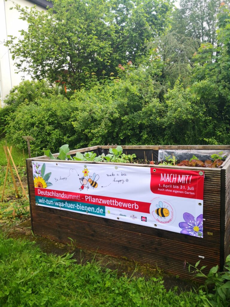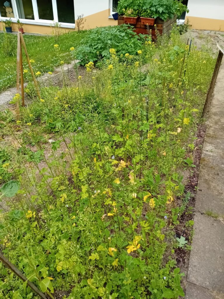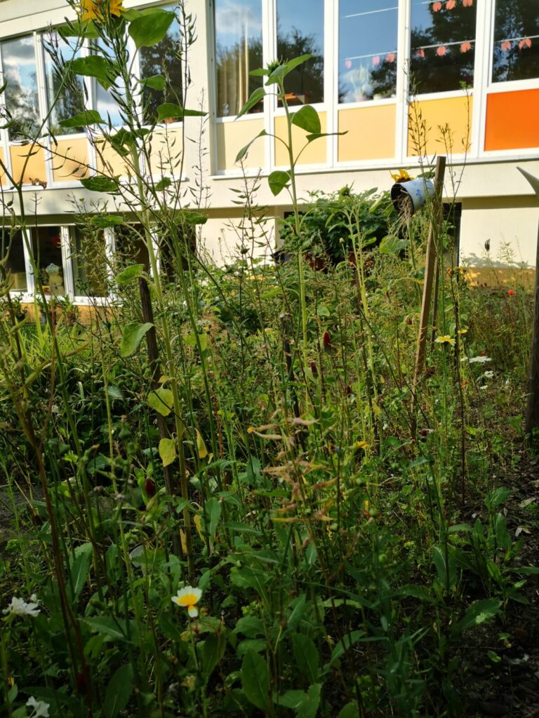 Jetzt sind wir stolz auf das Ergebnis - Die Blühwiese zieht allerlei Insekten an, unsere angepflanzten Sonnenblumen strecken sich gen Himmel und wir hatten ein echt schönes Schulgartenjahr!