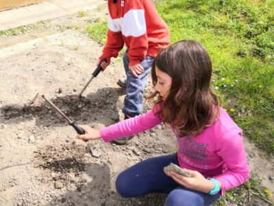 Das dafür vorgesehene Beet in unserem Schulgarten war über die vergangenen zwei Jahre vorher mit Kartoffeln für unser jährliches Kartoffelfeuer bepflanzt. Der Boden war verbraucht und ausgelaugt. Was lag da näher das Notwendige mit dem Nützlichen zu verbinden!