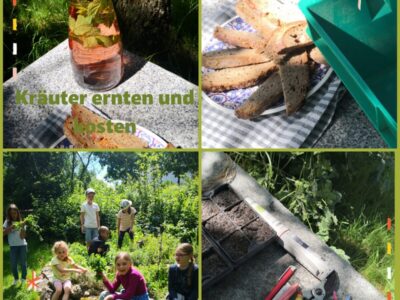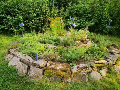 Die Zwischenzeit verging wie im Flug. Wir hatten viel zu tun: Kräuterspirale, Barfußpfad und die neuen Pflanzen in unseren anderen Beeten bedurften viel Aufmerksamkeit und Pflege.
