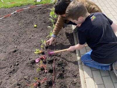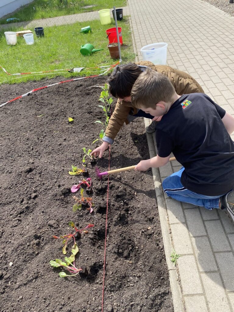Wir staunen darüber wie in kurzer Zeit so viel wachsen und blühen kann. Auch die Bienen haben schon den Weg in unseren Hortgarten gefunden.