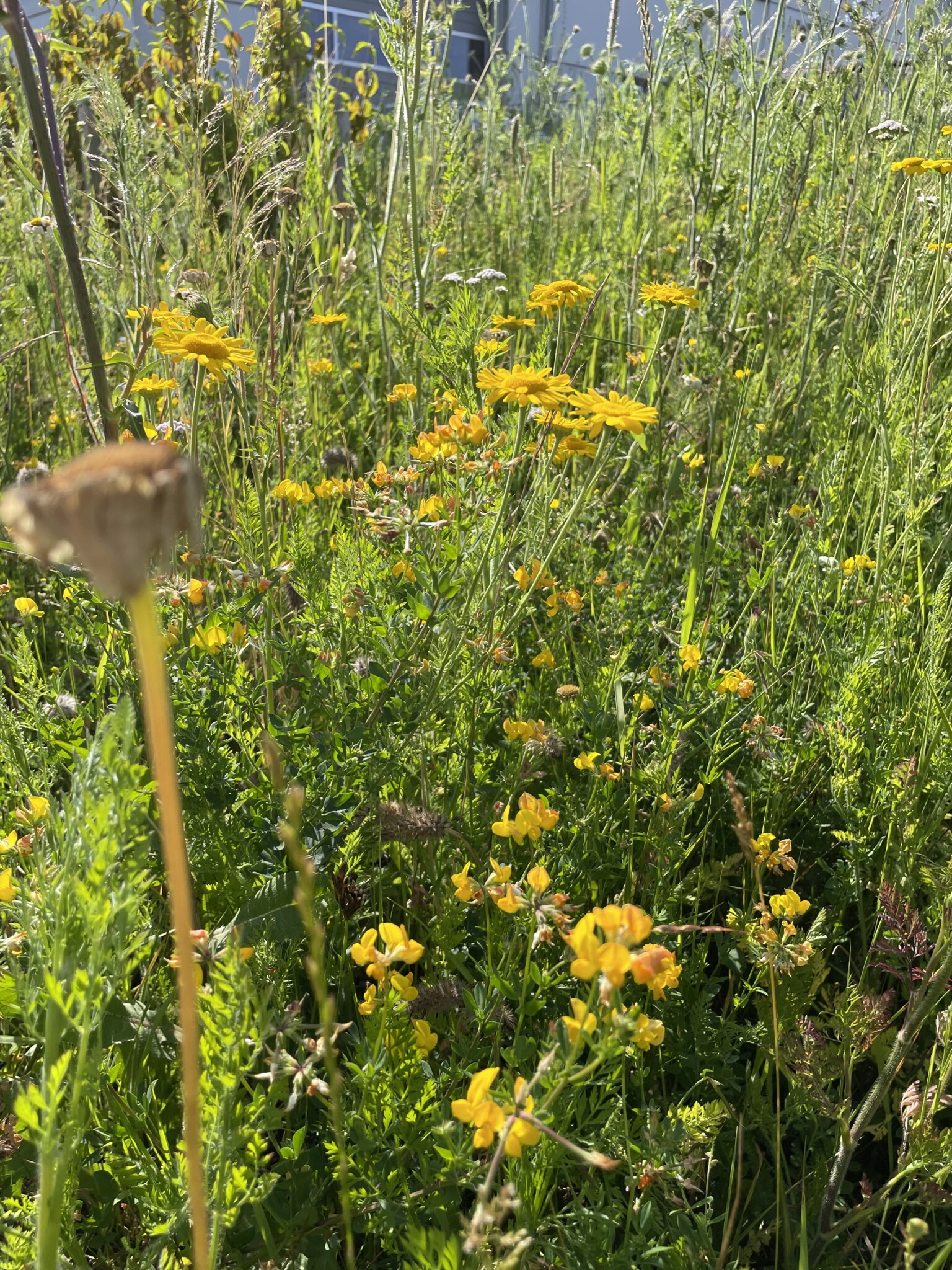 Die Morgenstunden auf unserem GeländeKleiner Einblick in unsere WiesenGemeine WegwarteGemeine SchafgarbeWilde MalveGewöhnlicher HornkleeKuckucks-LichtnelkeWeiße LichtnelkeKornblumenAcker-Kratzdistel LeinWilde MöhreBorretsch SchmuckkörbchenSonnenblumenKlatschmohnKamille StorchschnabelFärberkamille Gewöhnlicher NatternkopfUnsere Wilde Wiese