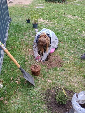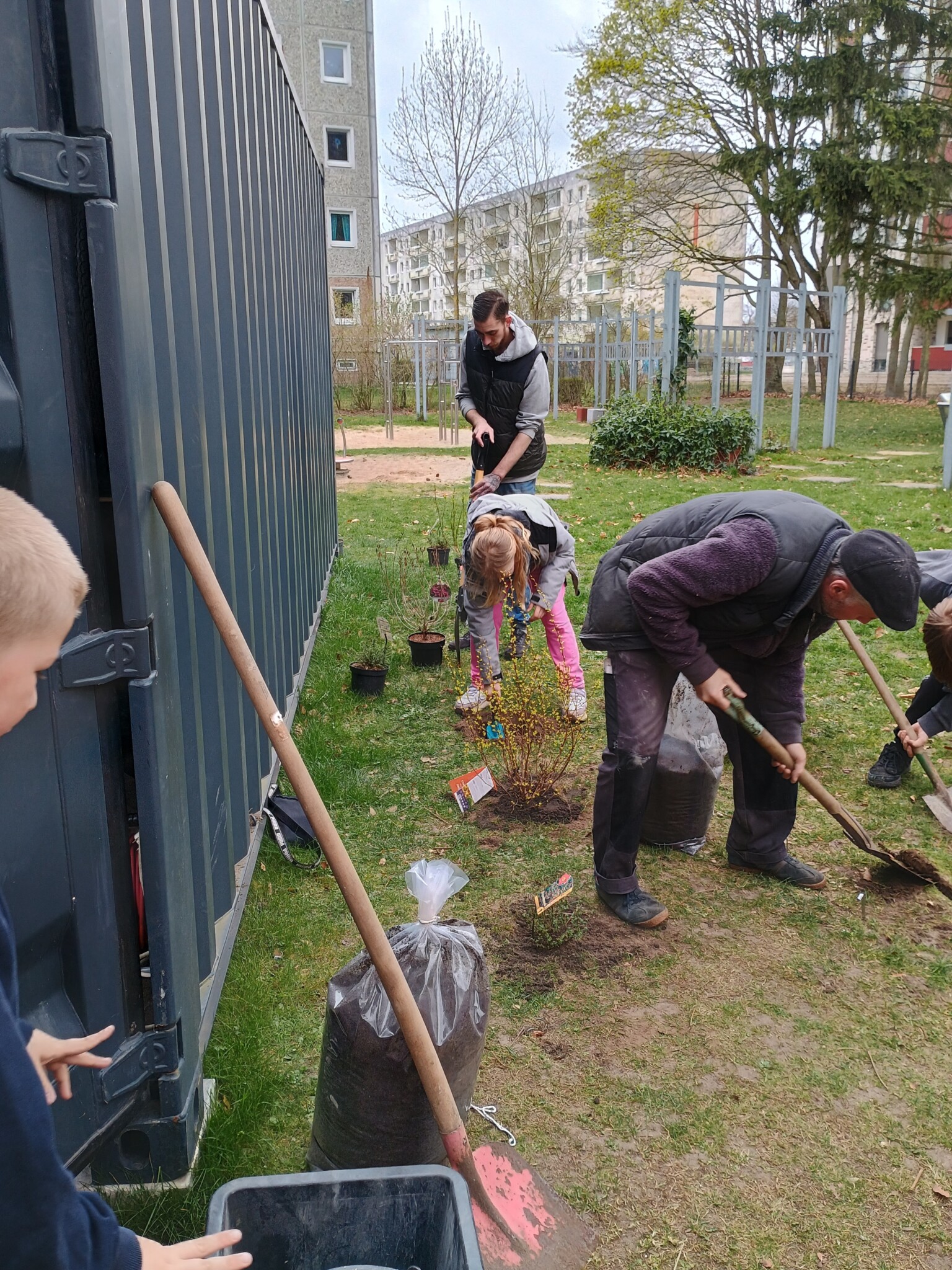 Mit großer Begeisterung pflanzten die Kinder viele heimische Pflanzen, die besonders reich an Pollen und Nektar sind. Auch ein selbstgebautes Insektenhotel soll demnächst hier seinen Platz finden und vielen kleinen Krabblern ein neues Zuhause bieten.