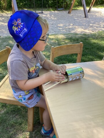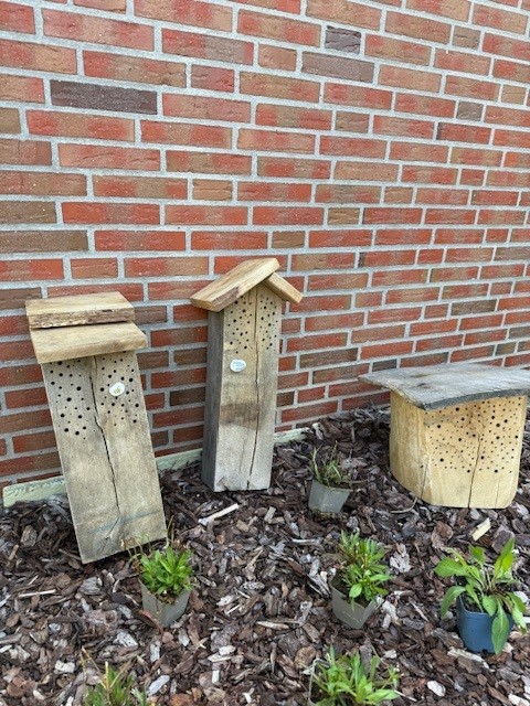 Die Kinder haben zudem über 20 Dosenhotels für Wildbienen gebaut. Diese wurden überall im Außengelände des Kindergartens aufgehangen und sollen zukünftig z.B. Mauerbienen aufnehmen.