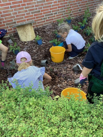 Die Kinder ganz stolz und motiviert beim pflanzen der heimischen Stauden