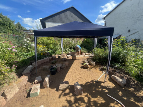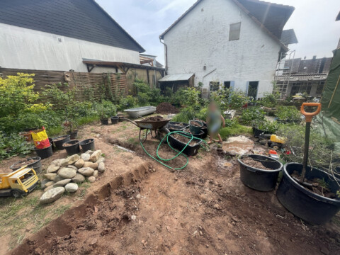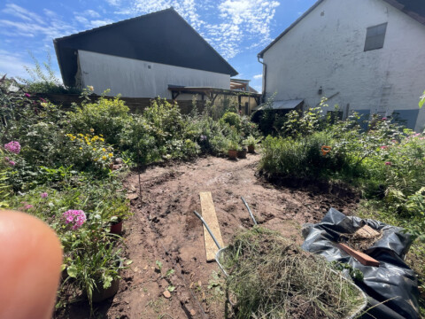 Am Anfang war da nur Beton, etwas Rasen – und viel Verbautes. Für uns bedeutete das: Ärmel hochkrempeln und loslegen. Alte Volieren mussten weichen, massive Betonfundamente wurden ausgegraben, schwere Platten geschleppt. Insgesamt 14 Tonnen Erde haben wir bewegt – mit viel Muskelkraft und Durchhaltevermögen.