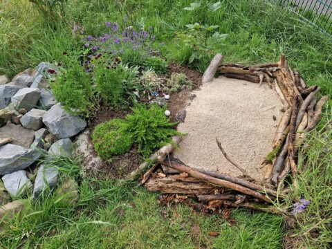Projekt 3: Wir haben einen unbewachsenen Naturerdhaufen angelegt um Bienen die Möglichkeit zu geben dort Nistplätze an schrägen Stellen in die Erde zu bauen.