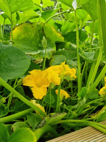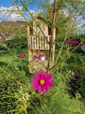 Im Garten befinden sich jetzt 8 Hochbeete mit verschiedenen Gemüsesorten, Erdbeeren, Kürbis, Zucchini etc. 8 Obstbüsche wie Johannisbeeren, Stachelbeeren, Him- und Brombeeren. Ein Kartoffelacker, drei Wildblumenbereiche ca. 80qm groß, eine große Wildwuchsecke, Totholzbereich, Benjeshecke, Naturerdhaufen, Beete mit heimischen Pflanzen und Kräutern, eine Kräuterspirale mit Trockenmauer, 5 Bienentränken , davon eine etwas größere, ein Sandarium, vier Lehmwände, zwei Bienenhotels, zwei Kirschbäume, ein Apfelbaum, ein Pflaumenbaum, eine Weide, ein Holunderbusch (gerettet aus dem Grüncontainer) mehrere Infoschilder über Wildbienen und heimische Pflanzen, ein Wurmkomposter für den natürlichen Dünger.