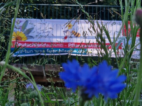 Das Stadtviertel ist grüner geworden, sogar am Straßenrand wachsen jetzt Wildblumenwiesen, die Nachbarn kommen in den Garten fragen nach Rat oder unterhalten sich einfach mit den Kindern über ihr Projekt. Bienen an Häuserwänden oder auf dem Spielplatz werden geschützt und nicht verjagt. Viele machen mit beim mähfreien Mai und von überall her kommt die Aussage: “Hätten wir doch früher auch mal so etwas gehabt“. Es ist ruhiger und entspannter um unseren Schulgarten herum geworden und wir fühlen so viel Liebe und eine Leidenschaft bei allen Leuten in und um unseren Garten, das macht einen sprachlos aber die Kinder auch mächtig stolz. Denn sie haben dank des Wettbewerbs etwas großes bewirkt. Sie haben eine Aufgabe gemeistert und hatten Erfolg, die Kinder können sich mit etwas identifizieren was ganz viele Menschen bewegt. Beim Stadteilfest konnten wir Infoflyer von Deutschland summt verteilen. Außerdem noch ein selbst erfundenes Quiz über Wildbienen und Deutschland summt für Jung und Alt anbieten und somit alle Besucher unseres Gartens über Deutschland summt und unsre Arbeit mit und für die Bienen, informieren. Die Kinder, Eltern, Nachbarn und der ganze Stadtteil blüht auf. Deutschland summt hat unseren Kindern Flügel gegeben und eine Aufgabe mit der sie wachsen.