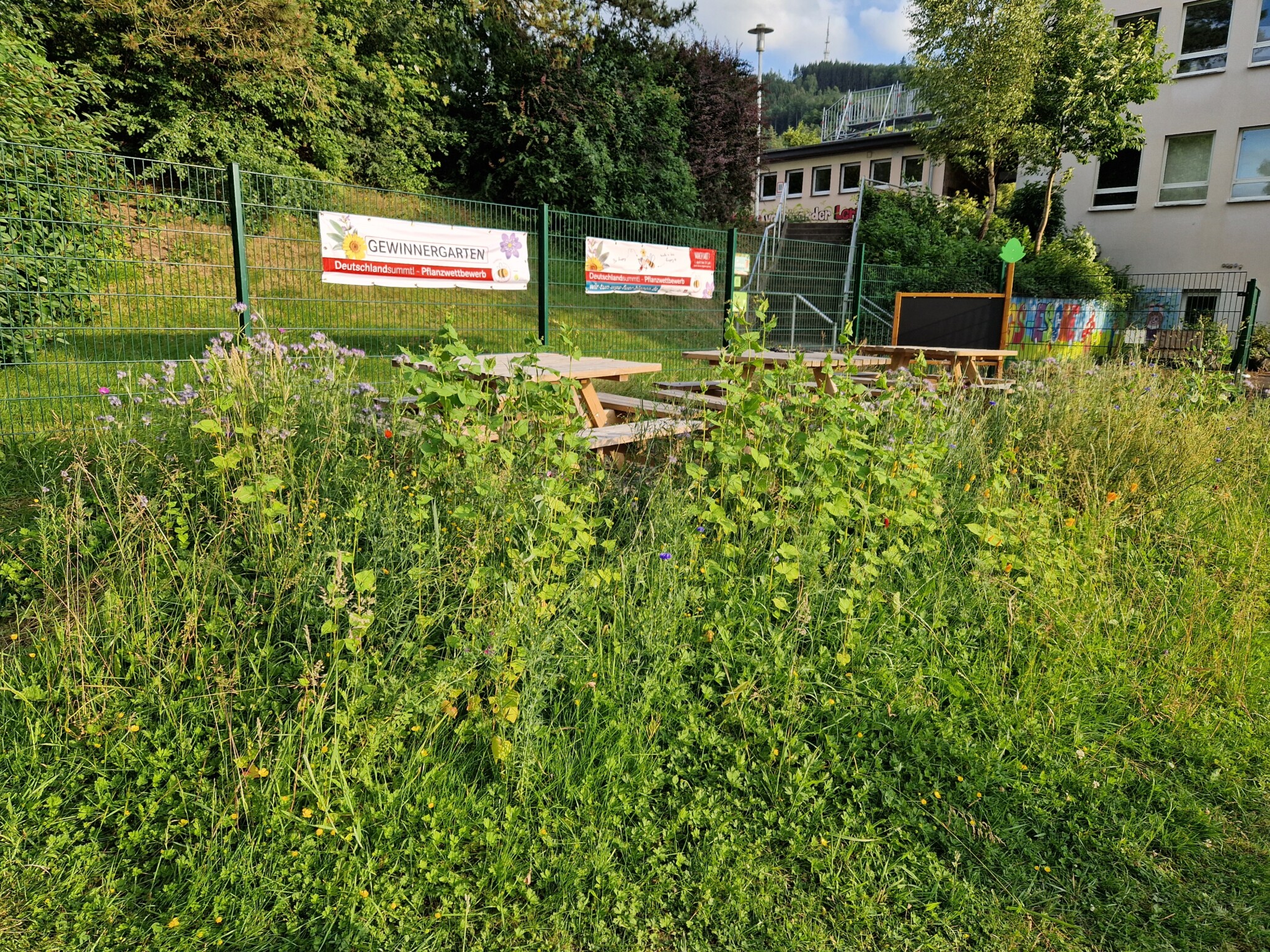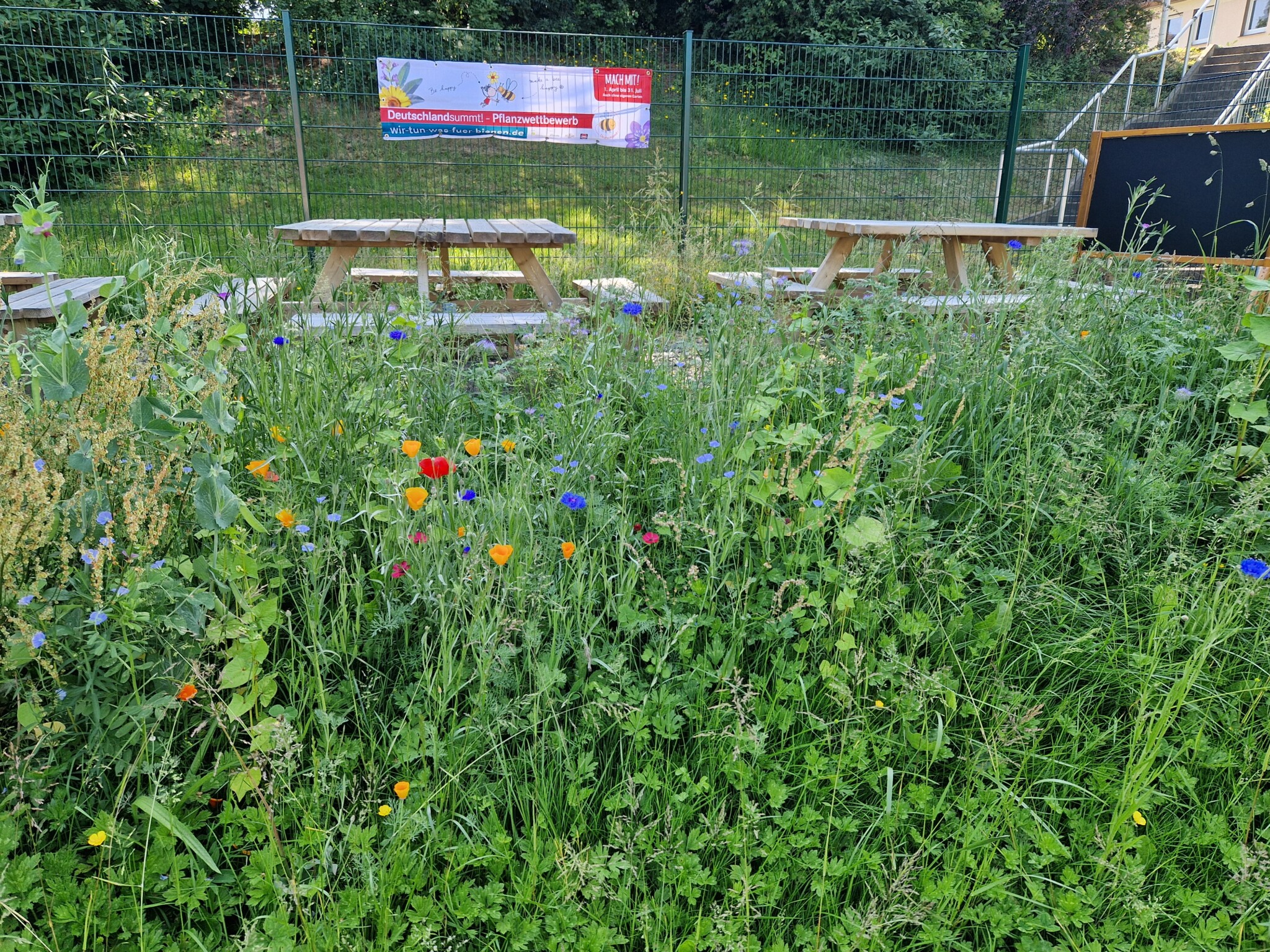 Vorschlag 10: Hat eigentlich nichts mit unserem Schulgarten zu tun, aber mit der Aktion Deutschland summt: Wir wollen einen bunten Schulweg. So durften wir Grünstreifen in Wildblumenwiesen verwandeln die auf dem Schulweg liegen.