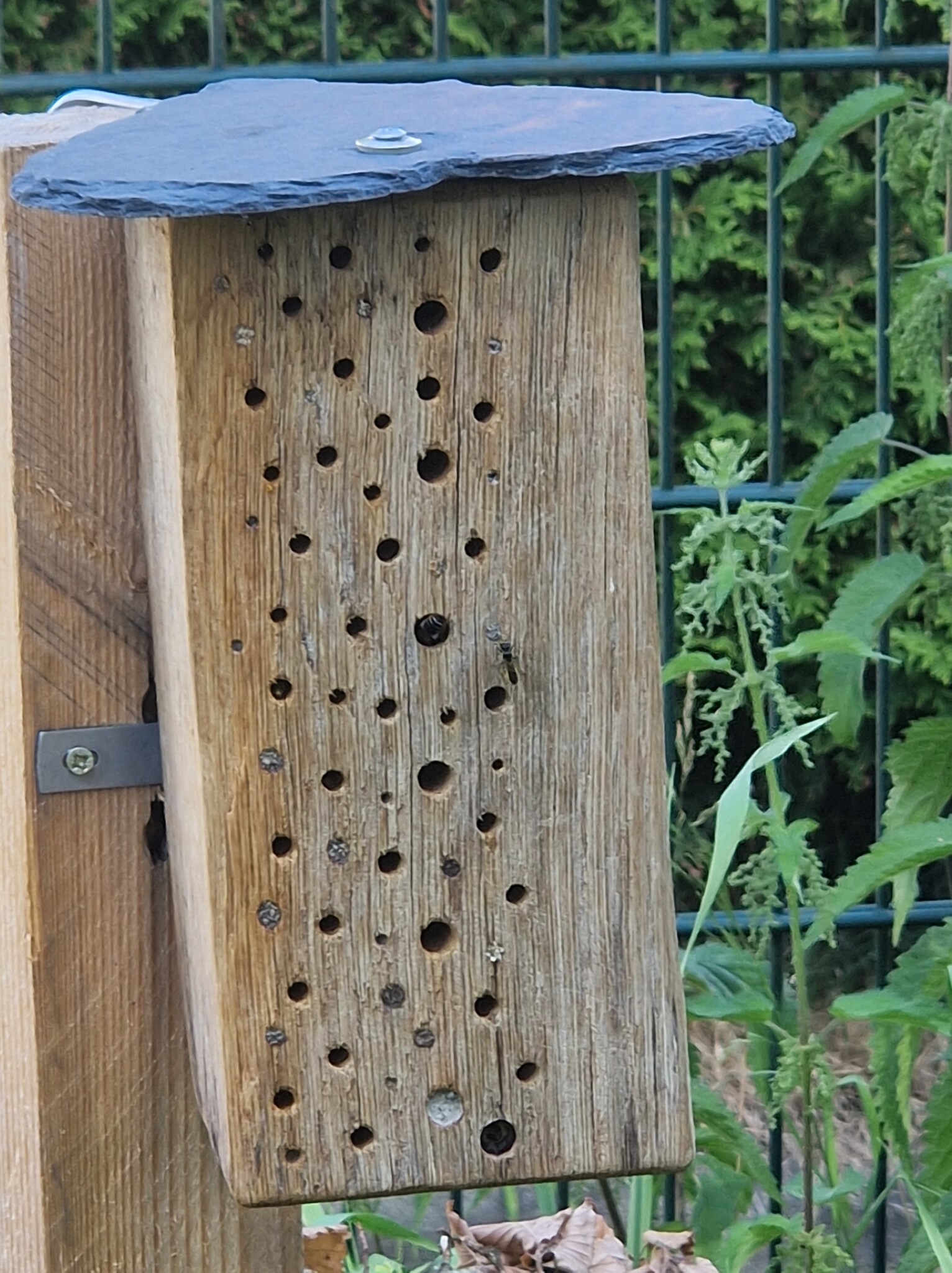 Projekt 9: Die Tannenzapfen sind aus dem alten Insektenhotel rausgeflogen und wurden durch Röhrchen und ein Sand Lehmgemisch ersetzt.
