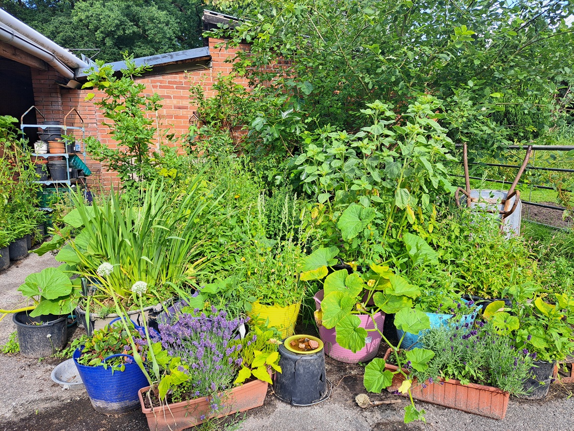 Alles blüht und gedeiht. schon bald ist kein Eimer oder Kübel mehr zu erkennen.