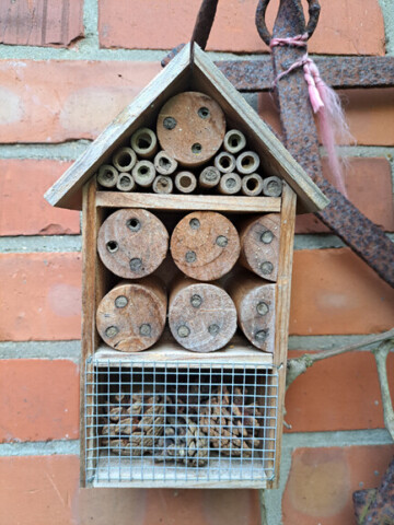 Da ab dem Frühlingserwachen hier reges Insektentreiben jeglicher Art herrscht haben wir einige Hotelzimmer bereit gestellt die zahlreich besucht und benutzt werden. Die verblühten Pflanzen sollen auch bis zum nächsten Frühjahr stehen bleiben und den Insekten als Überwinterungshilfe dienen.