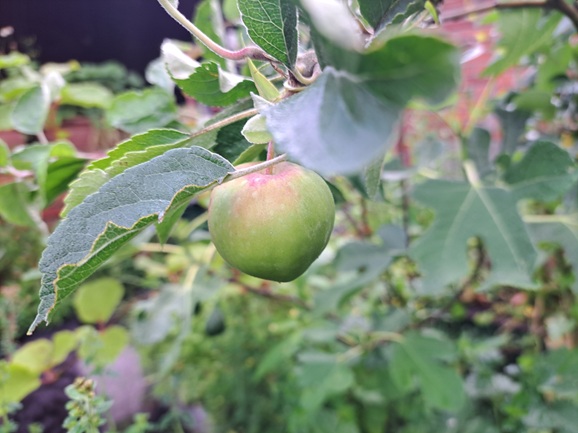 Die Äpfel werden jeden Tag größer und Größer und die Kürbisblätter spenden reichlich Schatten. Die Schmetterlinge und Insekten schwirren um den Oregano und Lavendel und durch die Bäumen fliegen die Meisen.