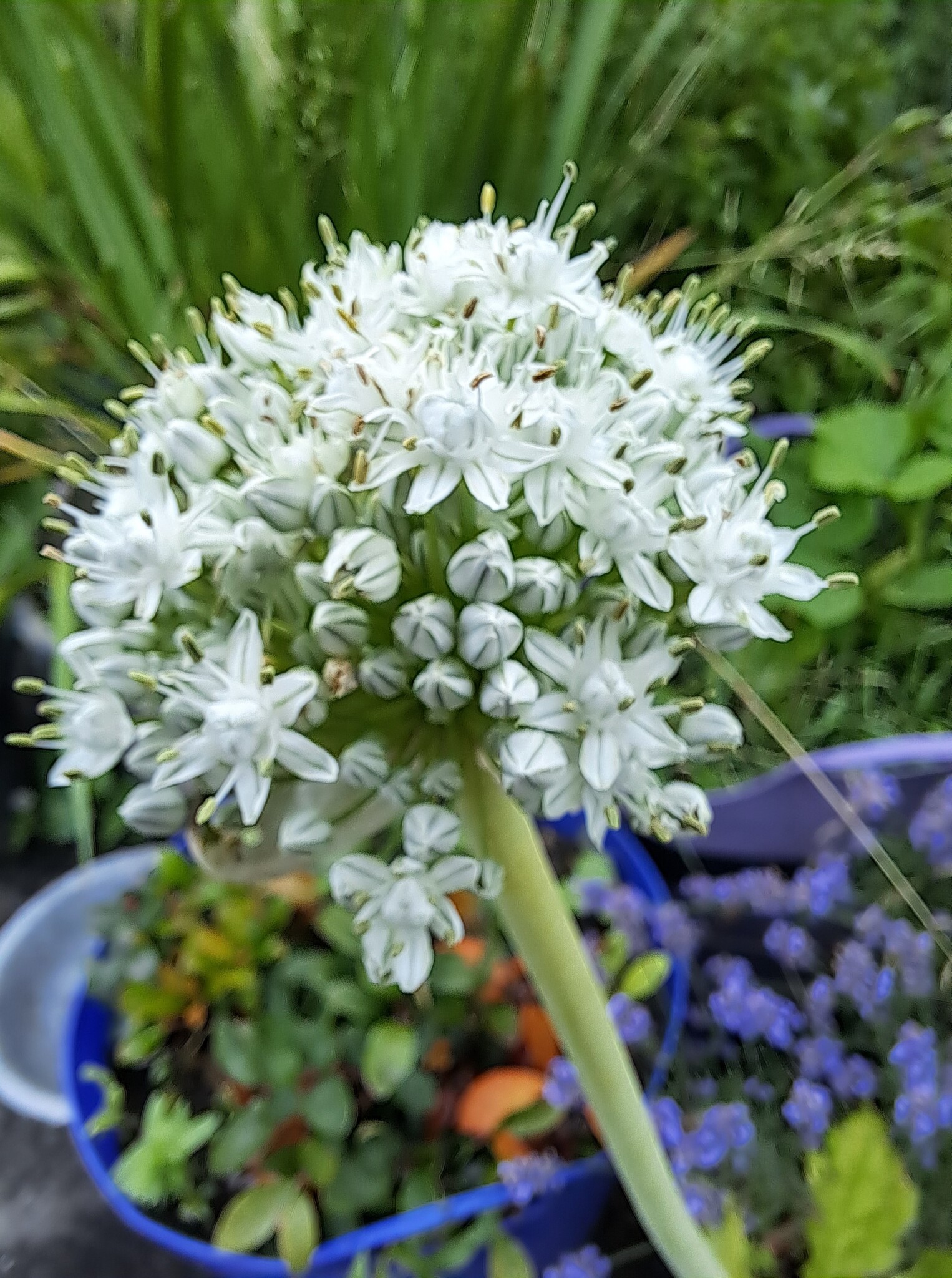 Alte Zwiebeln die nicht mehr so frisch sind und vielleicht schon keimen bekommen einen schönen Platz im Beet. Die Blüte ist wunderschön.