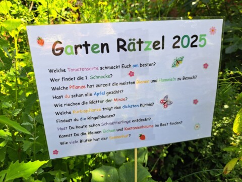 Mit unserem Suchspiel erfreuen wir nicht nur unsere Besucher. Sogar der Postbote hat schon mal nachgeschaut was da alles wächst und gedeiht. Kinder haben besonders viel Spaß an Rätzeln. Bei der Suche nach Pflanzen und Käfern darf gerne genascht werden. Besonders gut kommen die Minzblätter an.