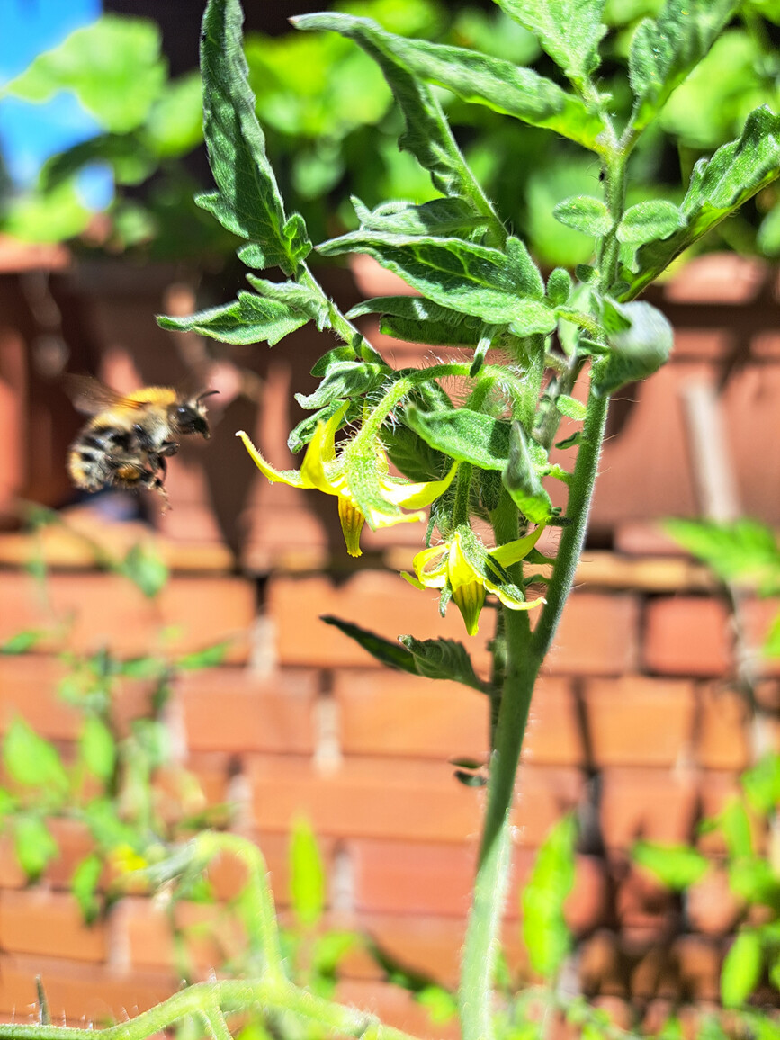Die Tomaten wachsen gut und werden fleißig bestäubt