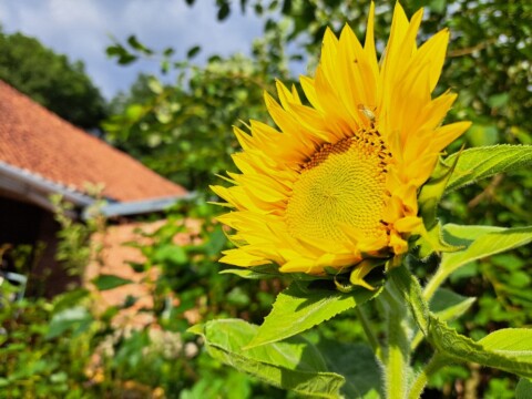 Die reifen Sonnenblumen sollen stehen bleiben und den Meisen und anderen Vögeln im Herbst als Nahrung dienen.
